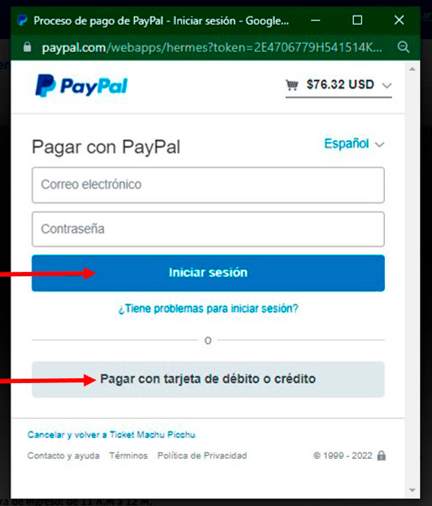 PASO 8: Quando complete o pago, seus bilhetes serão enviados a seu correio electrónico de contato em formato PDF para que o senhor (a) possa imprimi-los e apresentá-los o dia de sua visita a Machu Picchu, em seu bilhete deve aparecer seus dados pessoais, é um bilhete por cada visitante, o processo de envio não tarda mais de 24 horas.